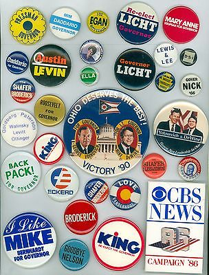 31 Vintage 1960s-90 Governor Political Campaign Pinback Buttons Pressman Egan