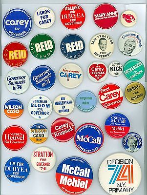 32 Vintage 70s-80s New York Governors Political Pinback Buttons - Carey Samuels