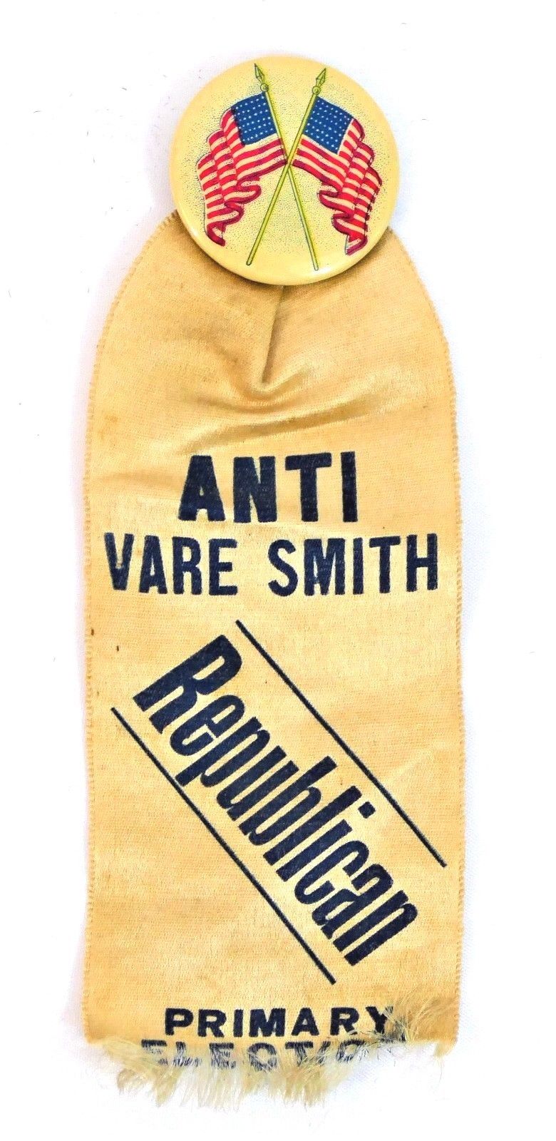 Antique US Flag Patriotic Primary Election Campaign Pin Badge Ribbon Republican