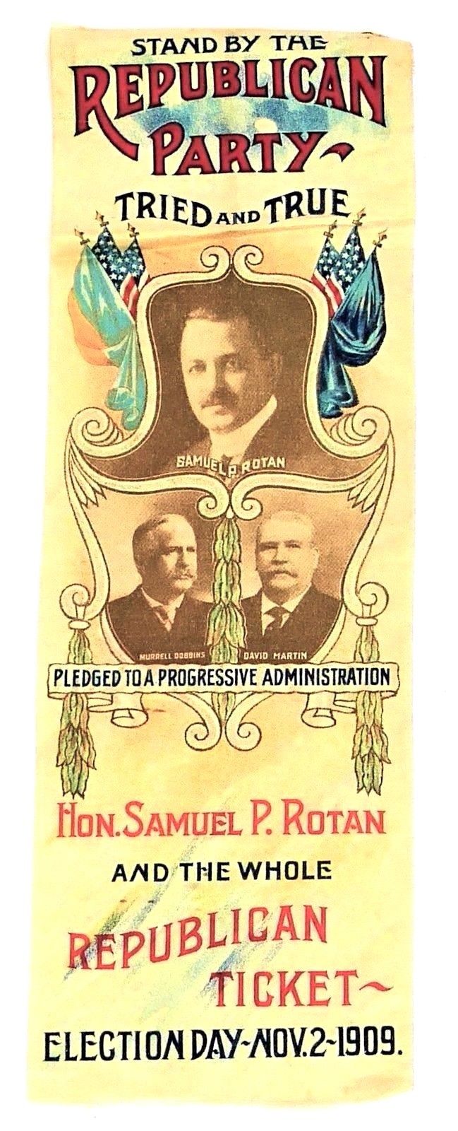 Antique 1909 Election Campaign Silk Ribbon Pin Republican Party President Taft