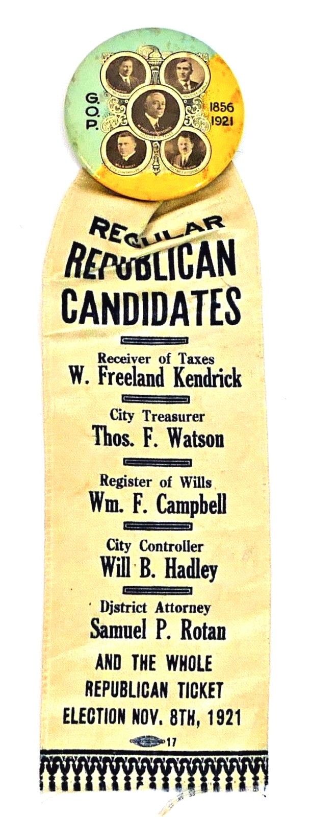 Antique 1921 Election ~Vote Republican Candidates~ Campaign GOP Pin Badge Ribbon