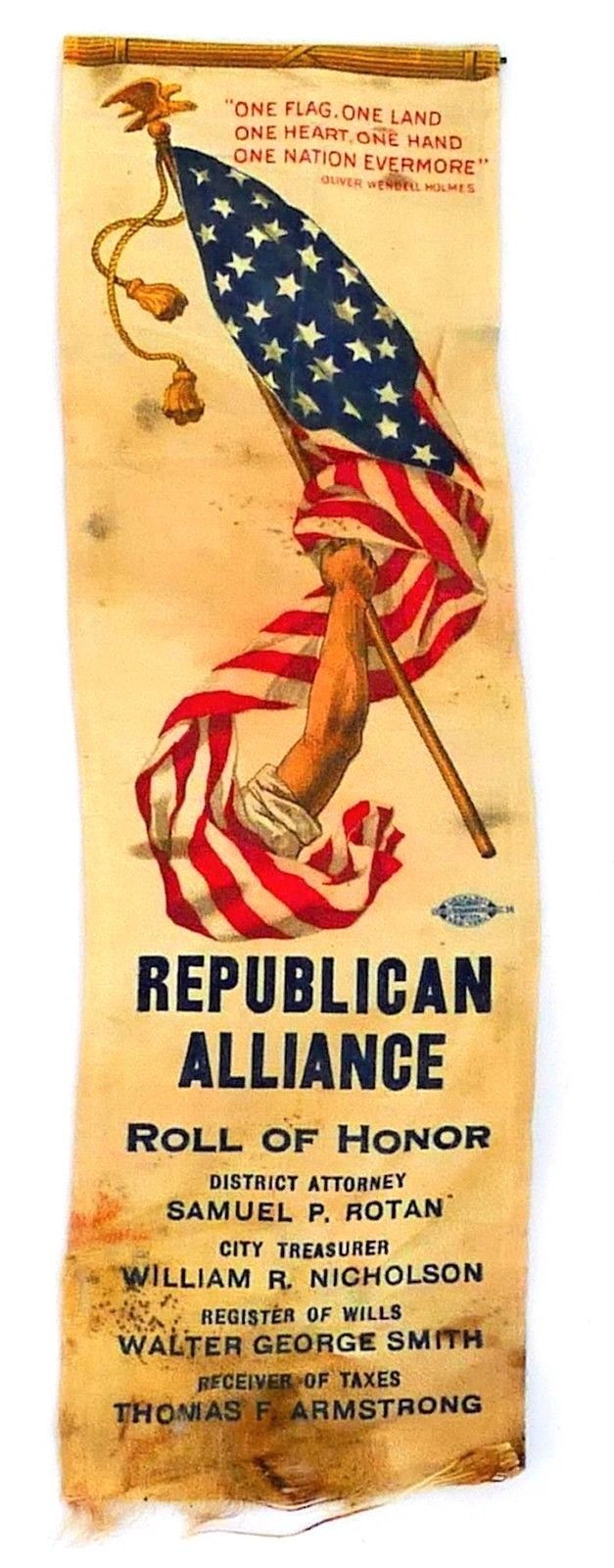 Antique Us Flag Patriotic REPUBLICAN ALLIANCE Election Campaign Silk Ribbon Pin