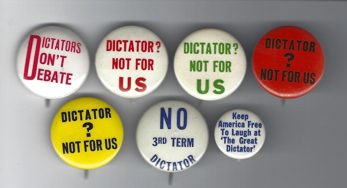 1940 PRO WILLKIE - ANTI FDR ROOSEVELT "DICTATOR" THEMED CAMPAIGN BUTTON GROUP