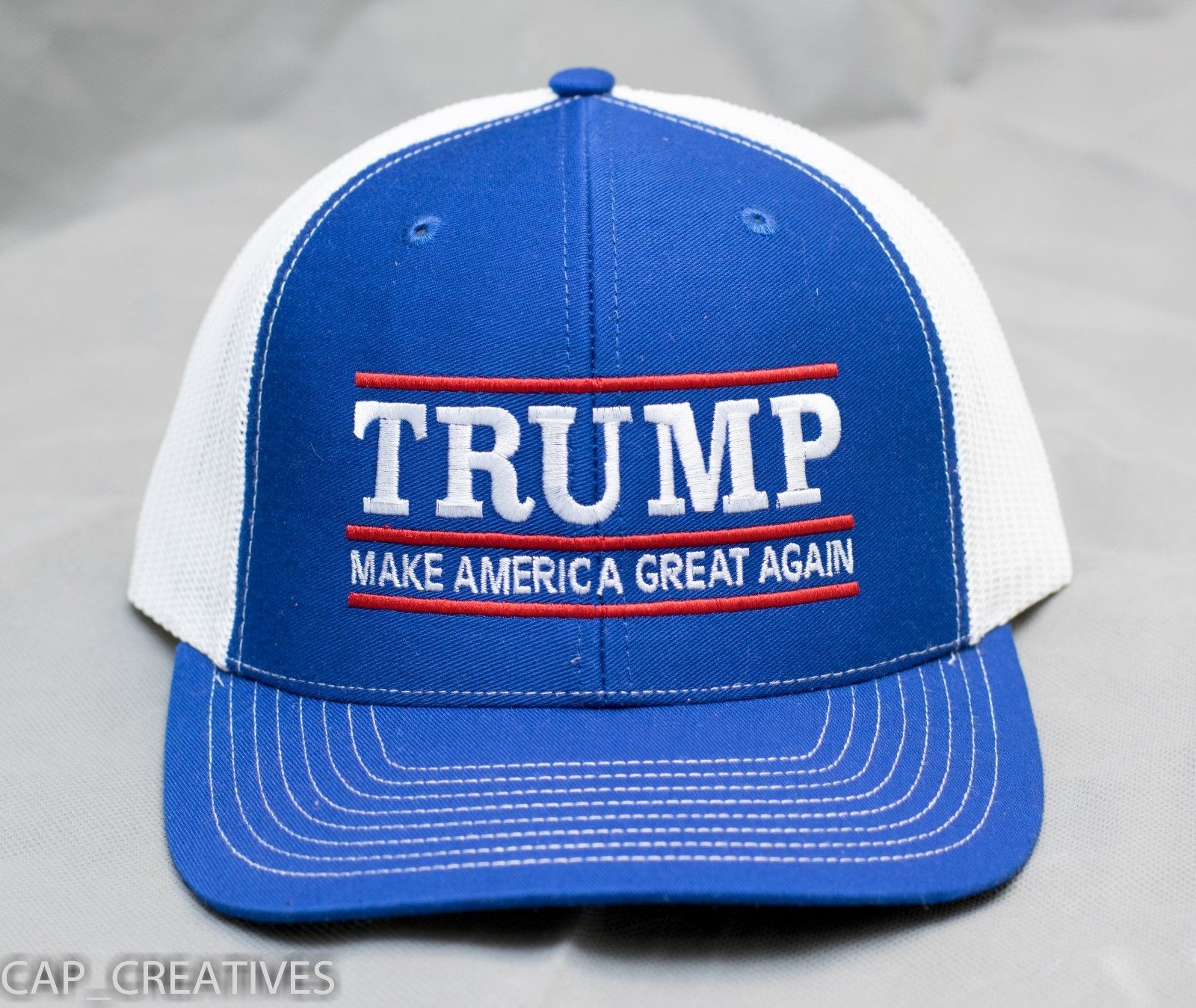 Title (ebay affiliate link): MAKE AMERICA GREAT AGAIN -Donald Trump Hat Republican 2016- Royal White Mesh Cap