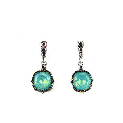 E2377 Delicate Wome Jewelry GREEN Opal CZ Crystal Earrings Antique Silver Plated