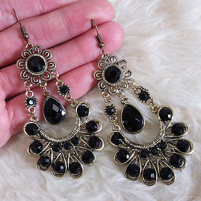 Title (ebay affiliate link): Elegant Vintage Antique Womens Bohemian Black Beads Fall Drop Dangle Earrings