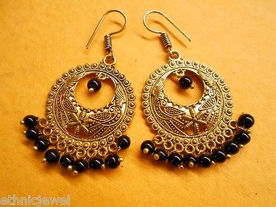 Title (ebay affiliate link): Rajshthani Bollywood Antique Golden Oxidized Black Stone Beads Jhumki SR110