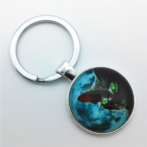 Title (ebay affiliate link): Tibetan silver Vintage cat Cabochon Glass Chain Pendant Metal Key Ring New