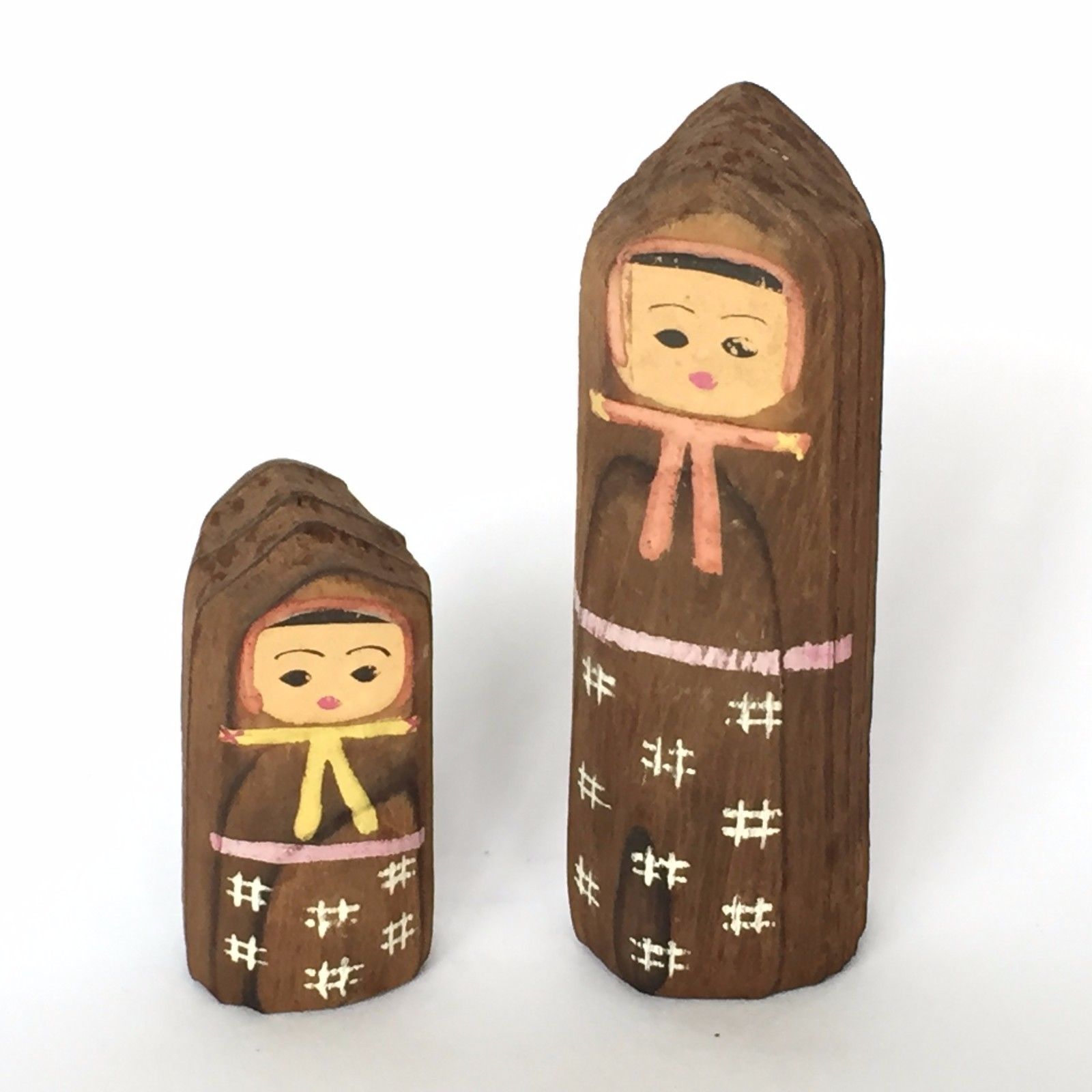 Title (ebay affiliate link): 2 Yukinko Kokeshi 4.4cm & 7.5cm Japan Antique Wooden Doll No.YQ814