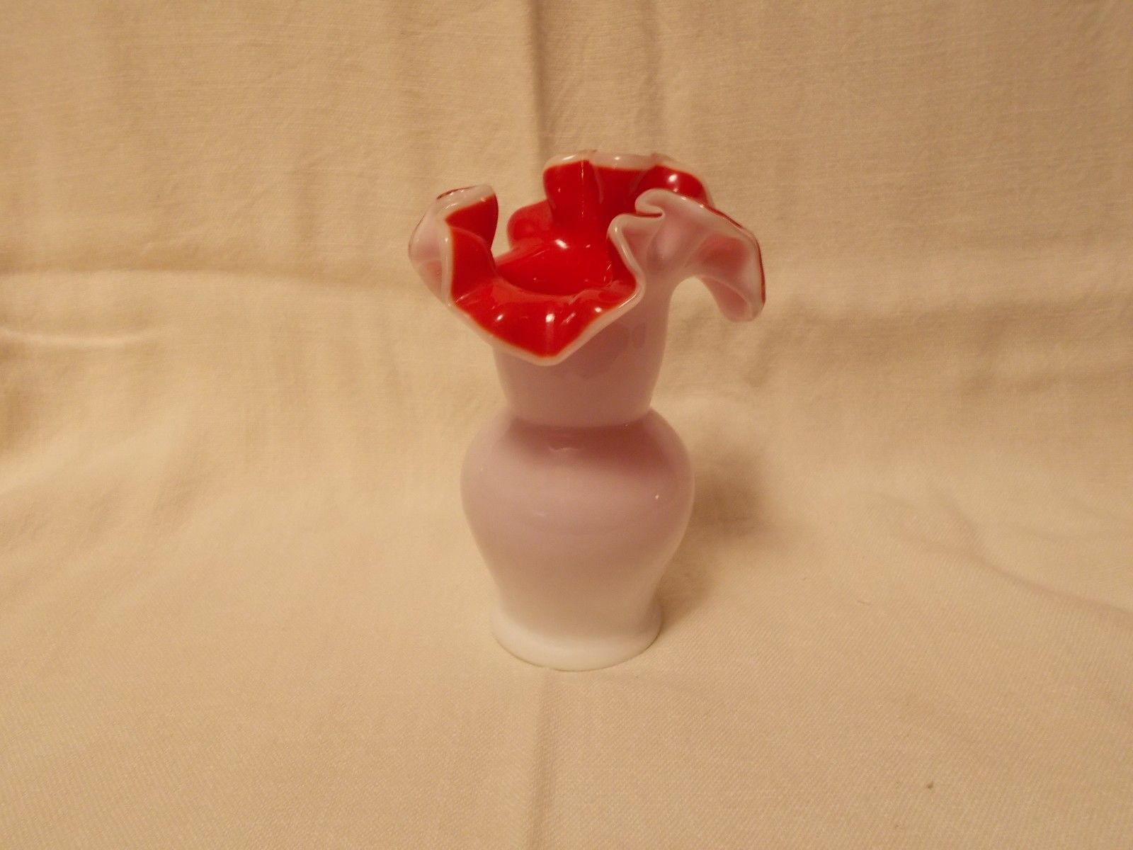Fenton? Milk Glass and Red Cased Ruffled vase