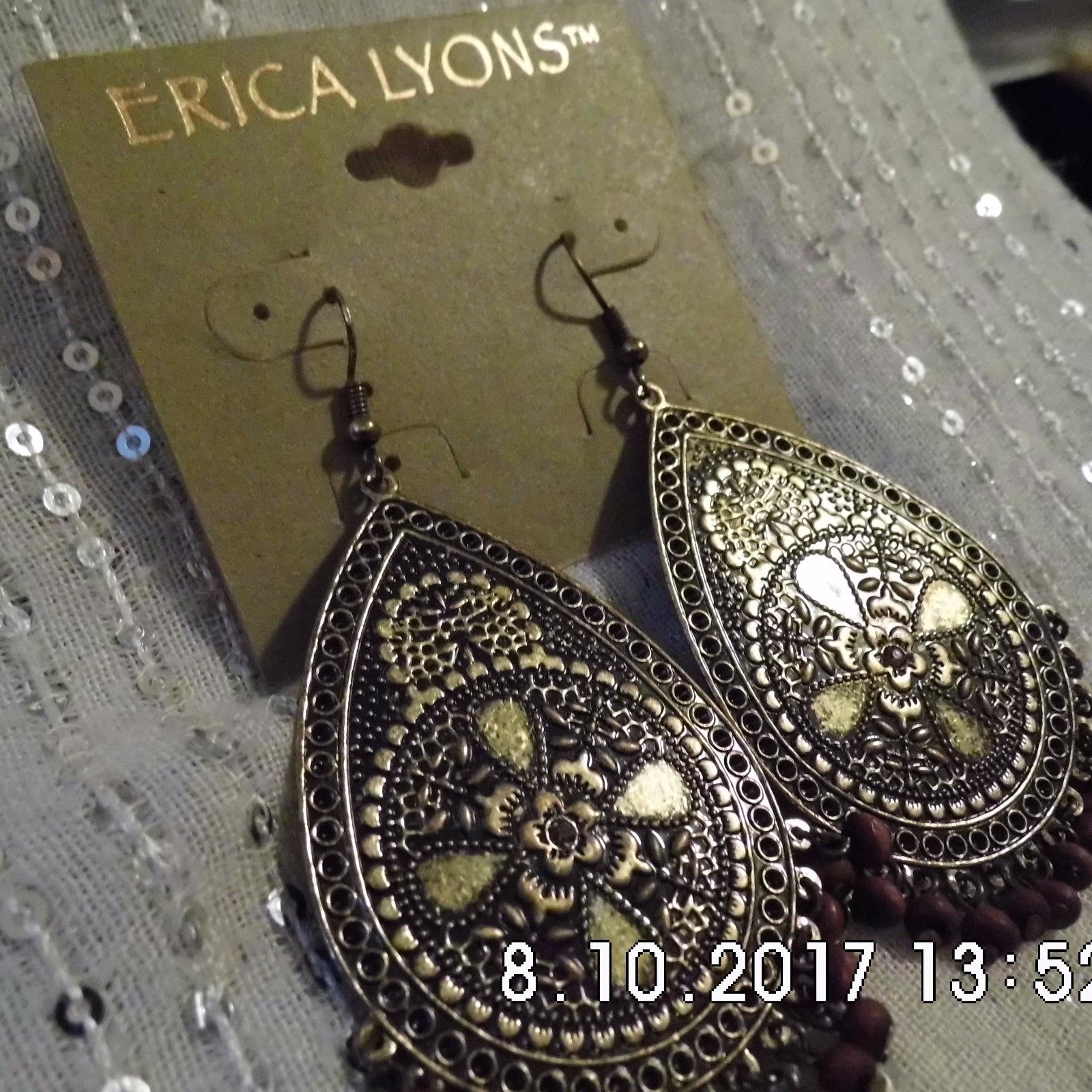Erica Lyons Antique-look Gold 2.75" Earrings