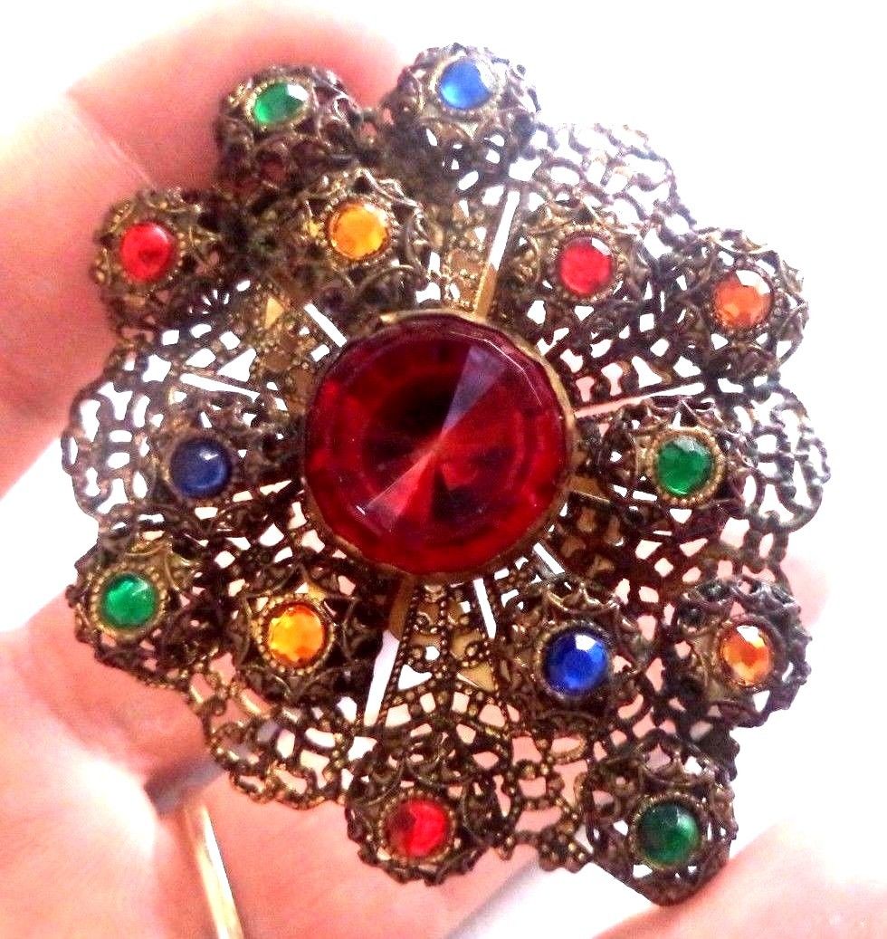 Title (ebay affiliate link): *RARE* ANTIQUE ESTATE FRUIT SALAD RHINESTONE FLOWER 2 3/4" DRESS CLIP!!! G6444A