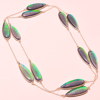 Australian Triplet Opal Antique Look .925 Silver Gemstone Jewelry Necklace 36''''