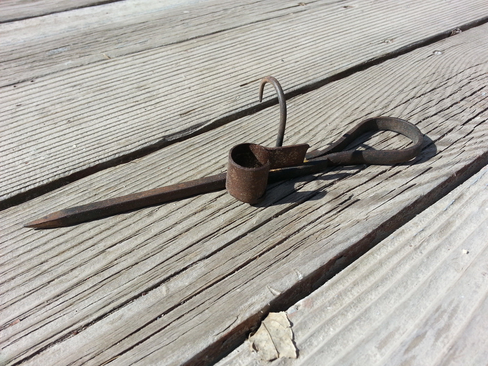 Title (ebay affiliate link): Antique Wrought Iron Miners Candle Stick Holder Sticking Tommy or Tommy Stick