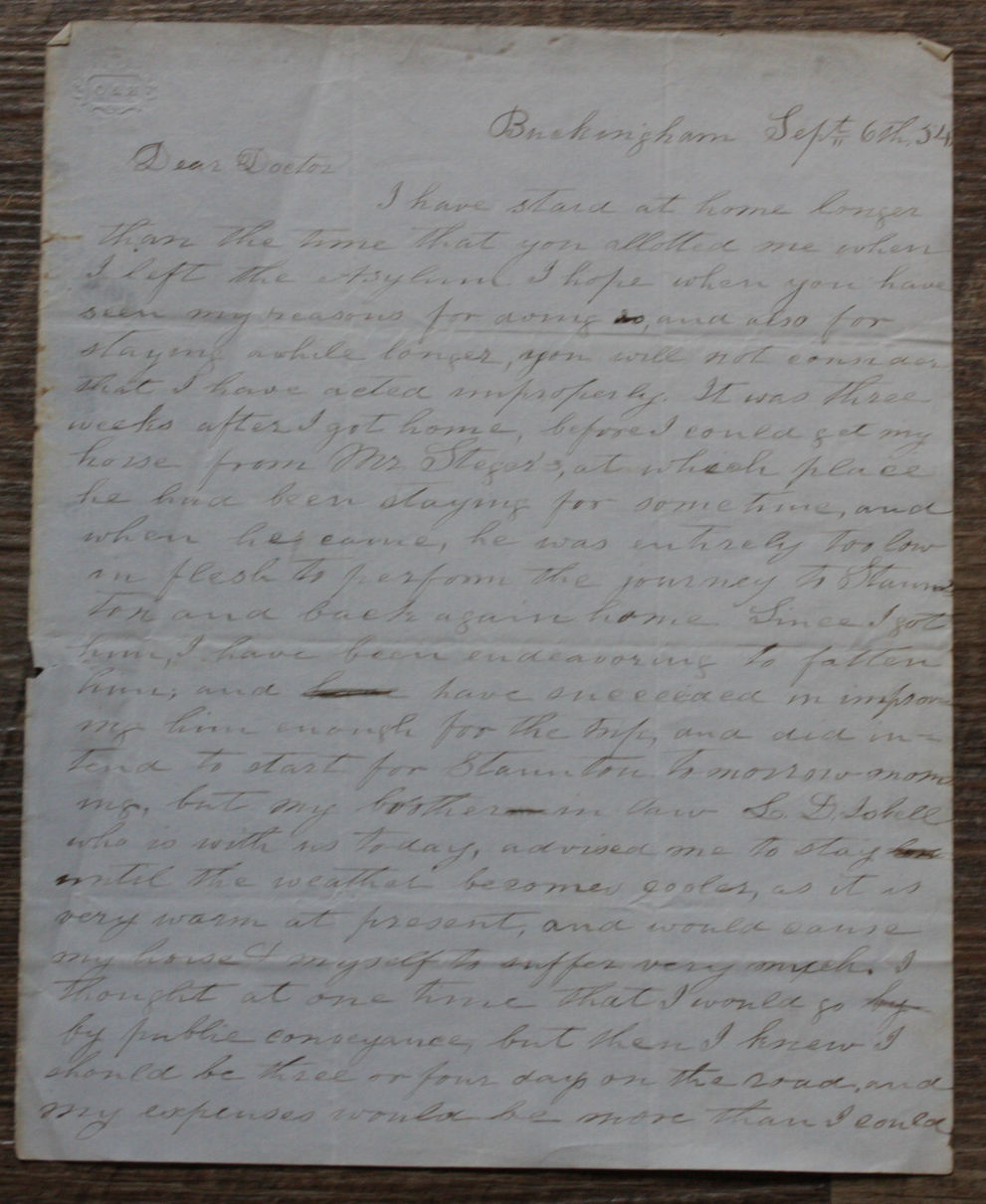 Title (ebay affiliate link): 1854 WESTERN LUNATIC ASYLUM - Patient Stalls his Return - Dr. Stribling
