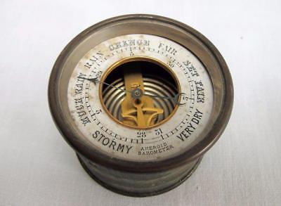 Antique Drum Shaped Naval Brass Cased Aneroid Barometer