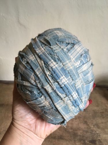 Title (ebay affiliate link): HUGE Best Early Antique Handmade Blue Homespun Rag Ball AAFA #2