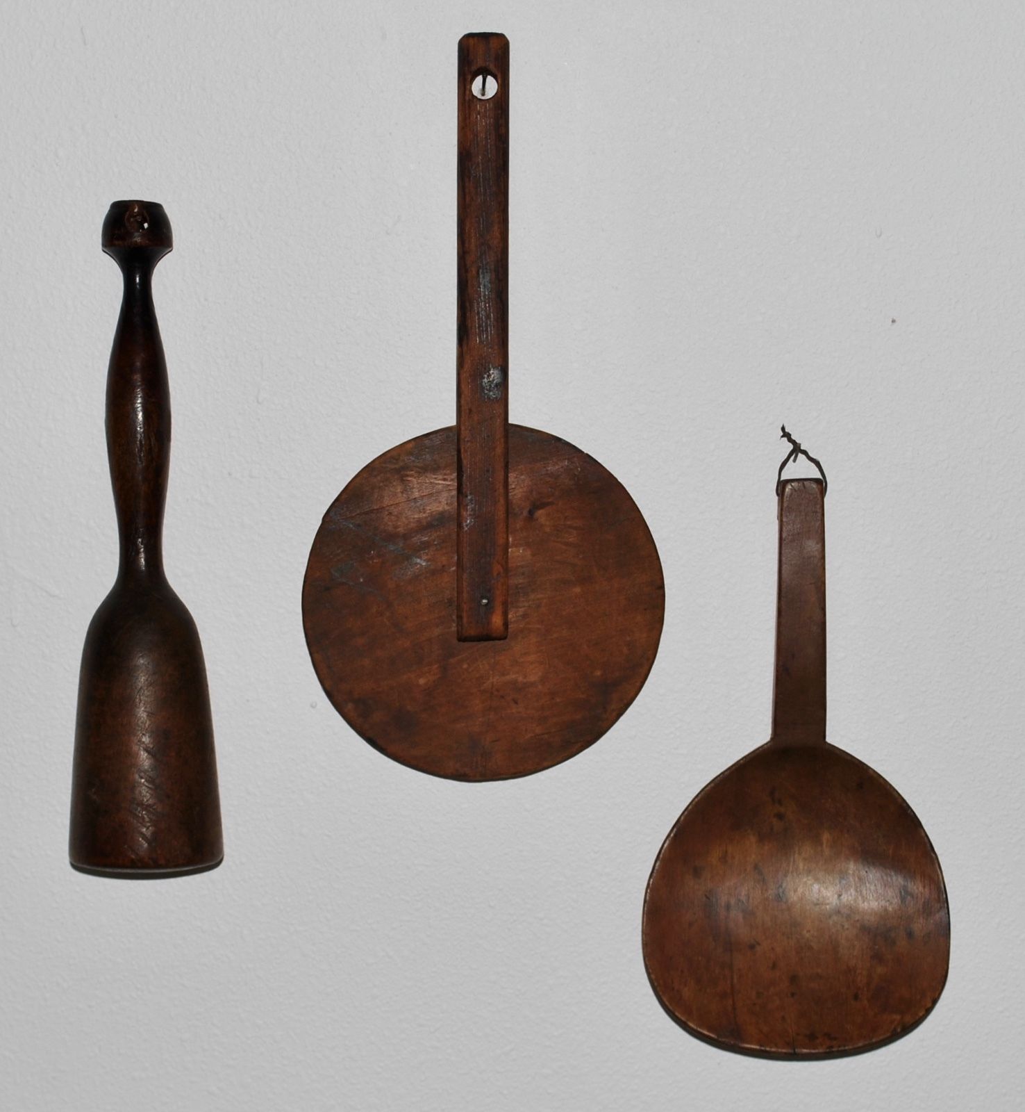 ANTIQUE PRIMITIVE WOOD COUNTRY KITCHEN UTENSILS - 3 PIECE GROUP