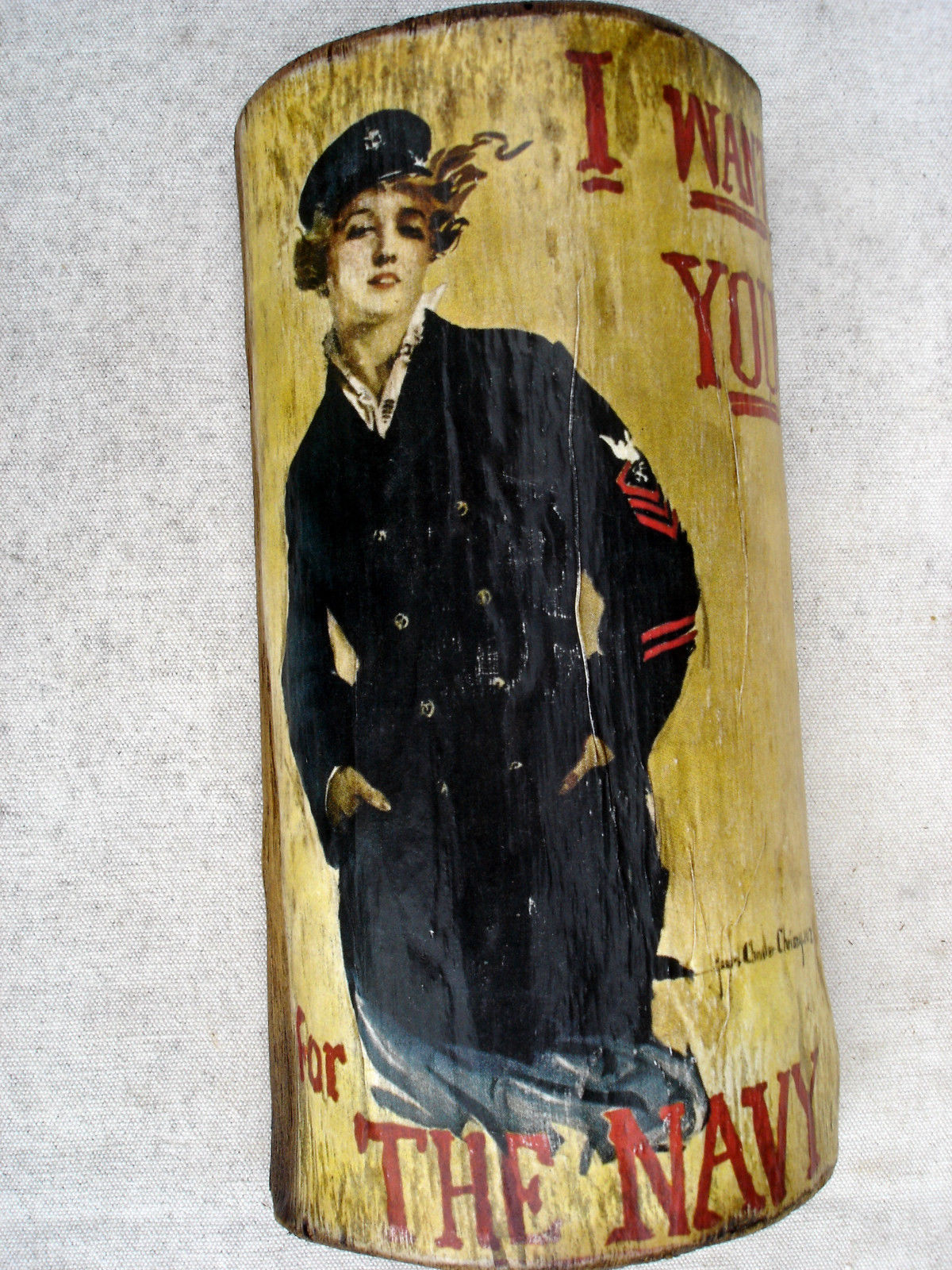 Title (ebay affiliate link): PICTURE WW1 ADVERTISEMENT WOMEN ENLIST IN NAVY MOUNTED ON PIECE OLD WOOD.