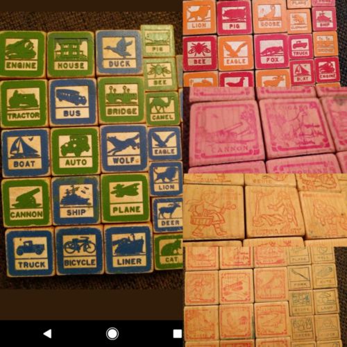 Title (ebay affiliate link): Vintage Childrens Wooden Blocks 28 pieces Primitive Folk art