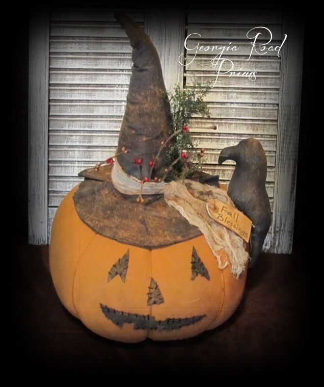 Title (ebay affiliate link): Primitive Halloween Jack~O~Lantern Table Center Piece~Folk Art Pumpkin