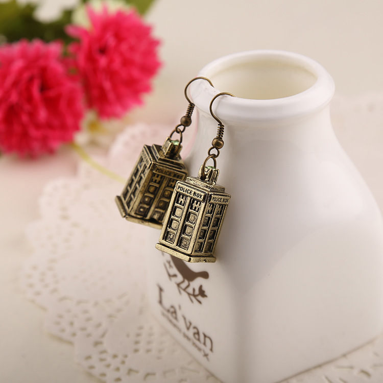 Title (ebay affiliate link): Dr doctor who earrings vintage antique silver tardis police box drop earrings