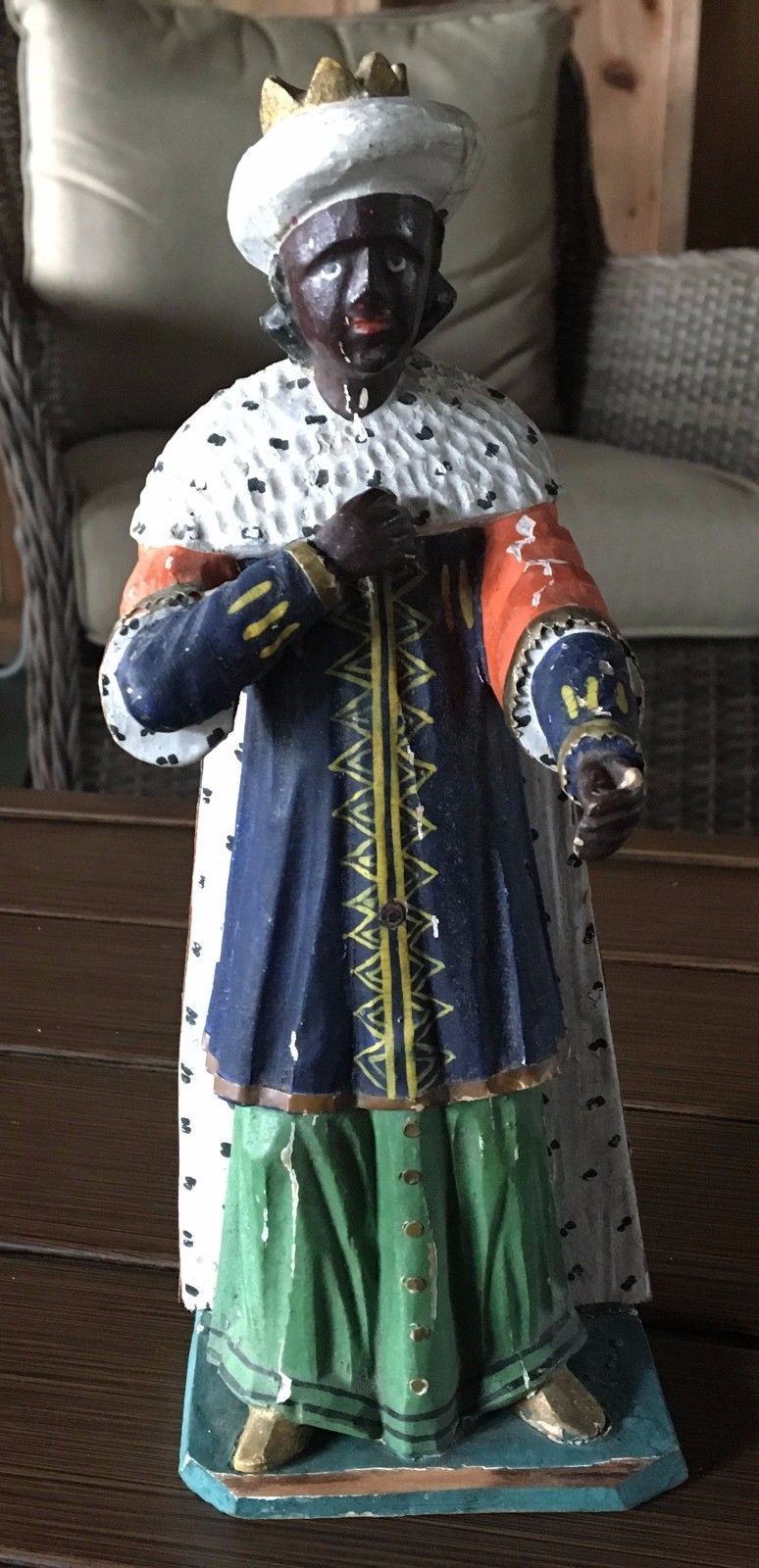 Title (ebay affiliate link): Antique Nativity Magi King Wiseman Wood Black African Hand Carved & Painted ~9"