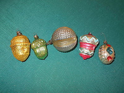 5 Small Antique Feather Tree Glass Christmas Ornaments Green Acorn, 4 More!