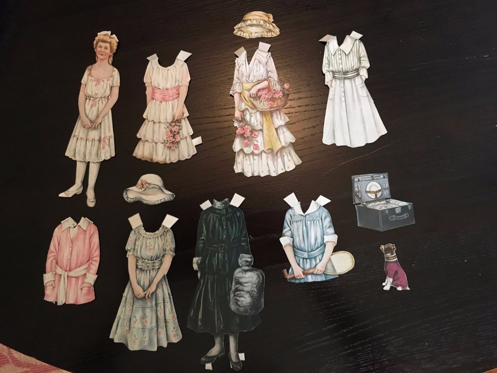 Title (ebay affiliate link): Atq. Edwardian Girl Paper Dolls 1900''s Cut Out WWI VTG Tennis Picnic Dog Ladies
