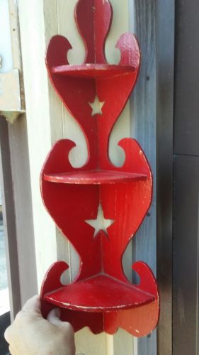 Title (ebay affiliate link): Vintage Wood Red Chippy Paint Corner Shelf with Stars