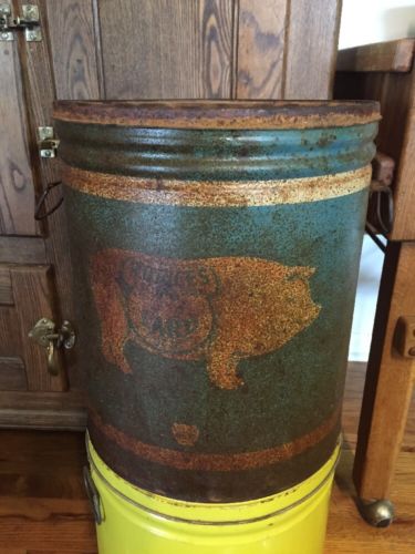 Title (ebay affiliate link): Large Antique Primitive Turquoise Rust PIG LARD Can With Lid 14 1/2" Tall