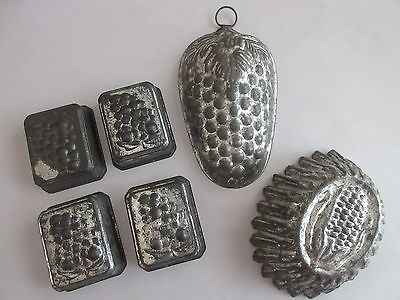 antique,vintage,TIN MOLDS,grapes,corn,VERY OLD MOLDS,NICE PRIMITIVE LOT