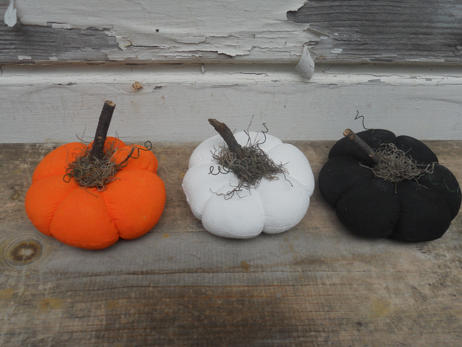 Title (ebay affiliate link): Primitive Halloween Fall Orange Black White Pumpkin Ornies Bowl FIllers Decor