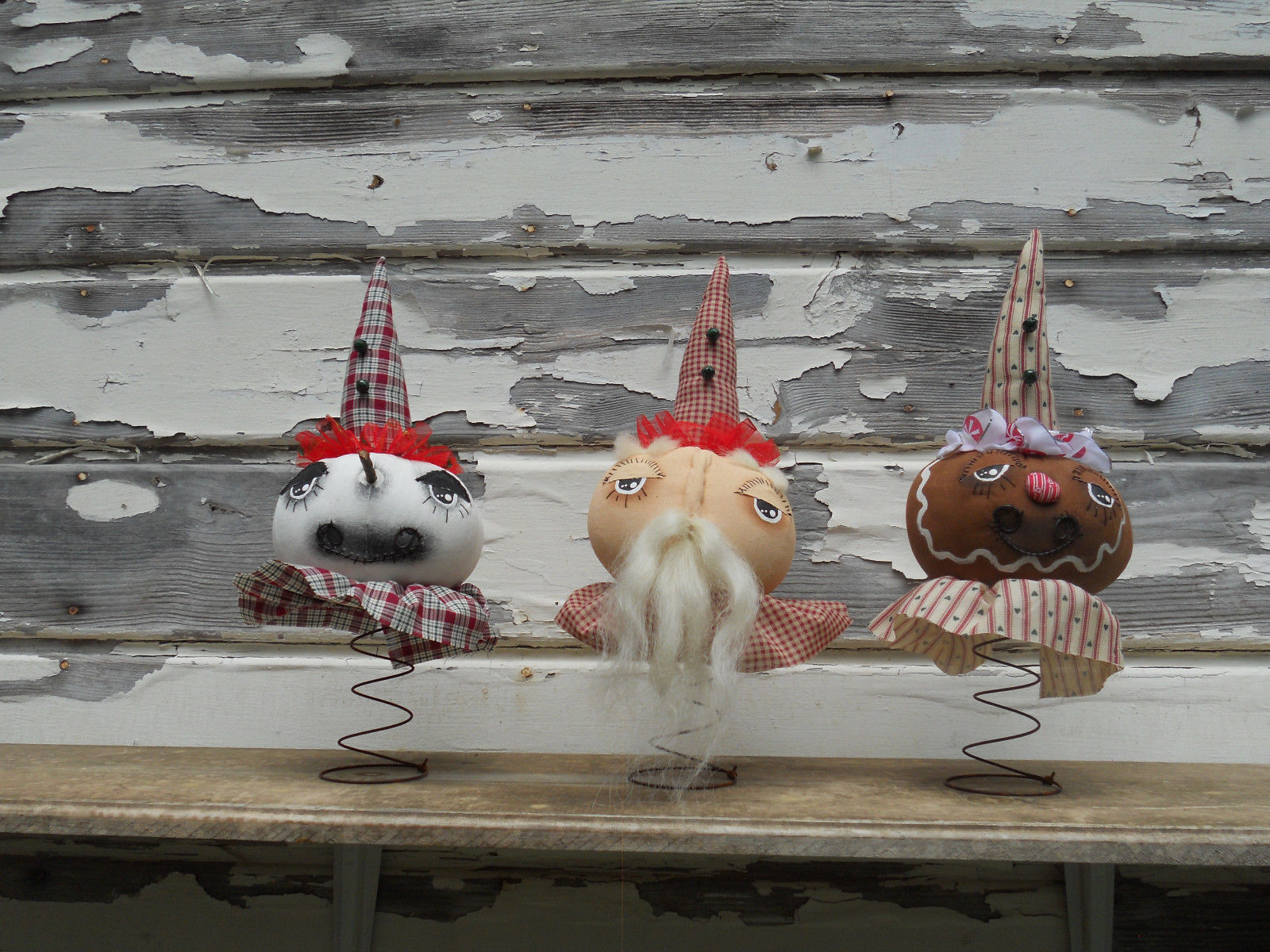 Title (ebay affiliate link): Primitive Christmas Santa Gingerbread Snowman Ornies Spring Nodders Decor