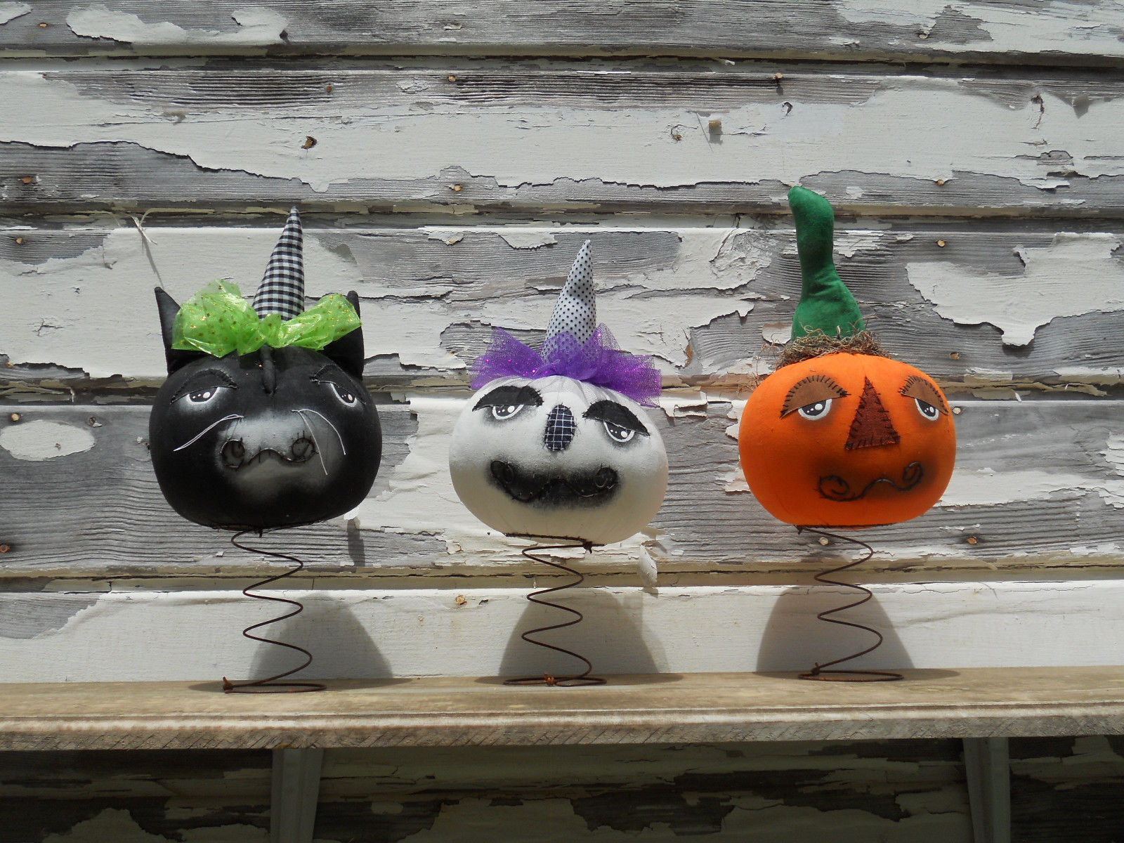 Title (ebay affiliate link): Primitive Halloween Cat Ghost JOL Ornies Spring Nodders Shelf Sitters Decor