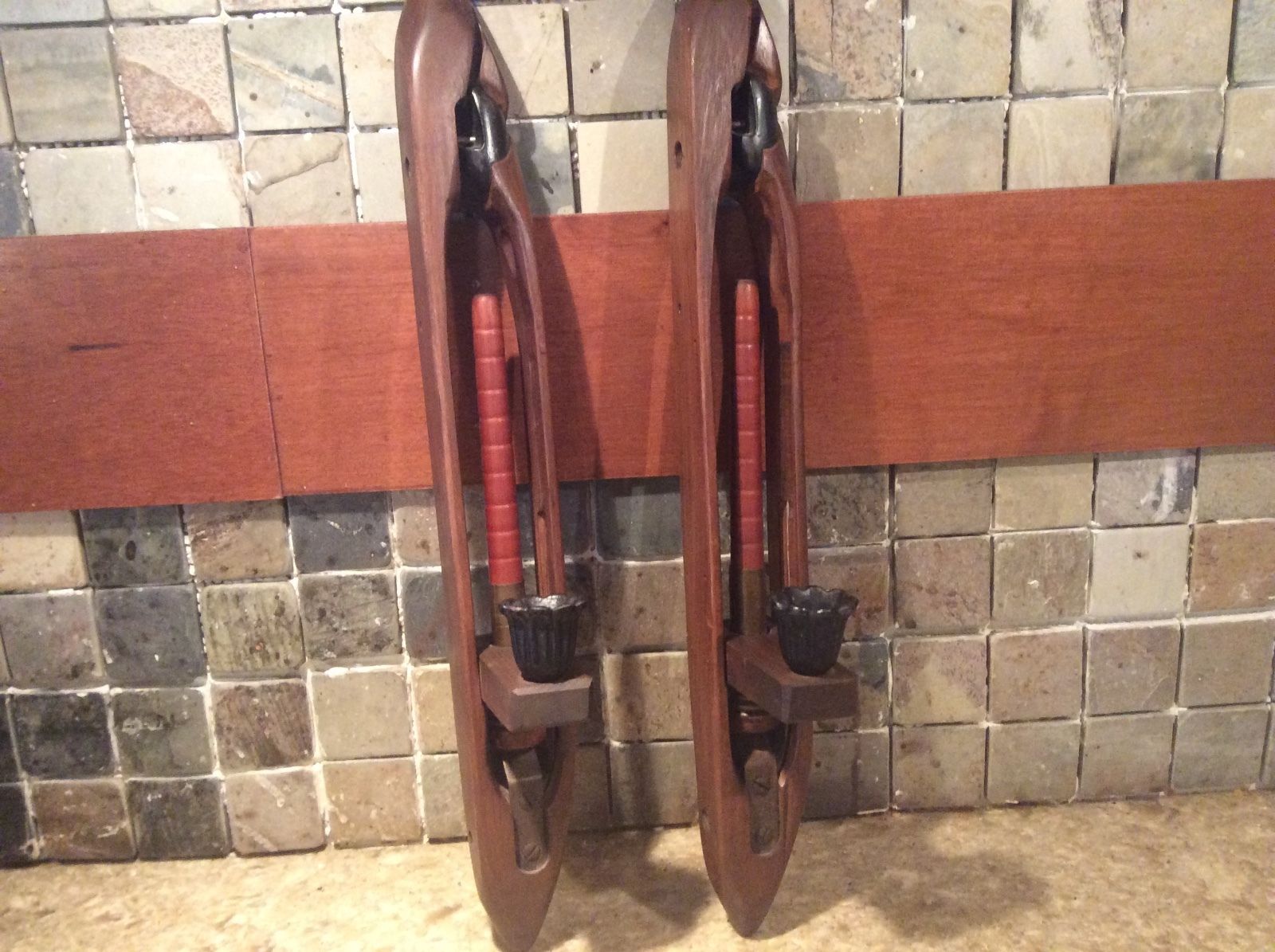 Title (ebay affiliate link): Antique ~Set of 2~Brown&Black Wooden Loom Weaving Shuttle Candle Holders ~EUC