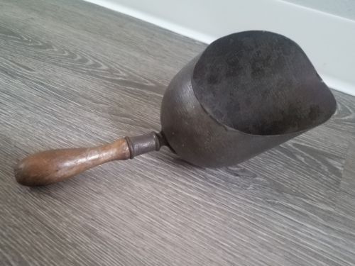 Title (ebay affiliate link): Vintage Farm Feeds Grain/Feed Scoop, Metal With Wood Handle