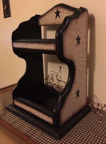 Title (ebay affiliate link): PRIMITIVE CRACKLE SHELF SOLID WOOD BLACK TAN COUNTRY FARMHOUSE DECOR LARGE
