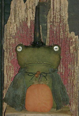 Primitive Grungy Halloween 11" Frog Witch Pumpkin Doll ~ Ro''s Cluttered Attic