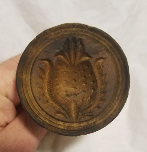 Antique WOOD COOKIE BUTTER MOLD Pineapple Flower PA Dutch 1800''s