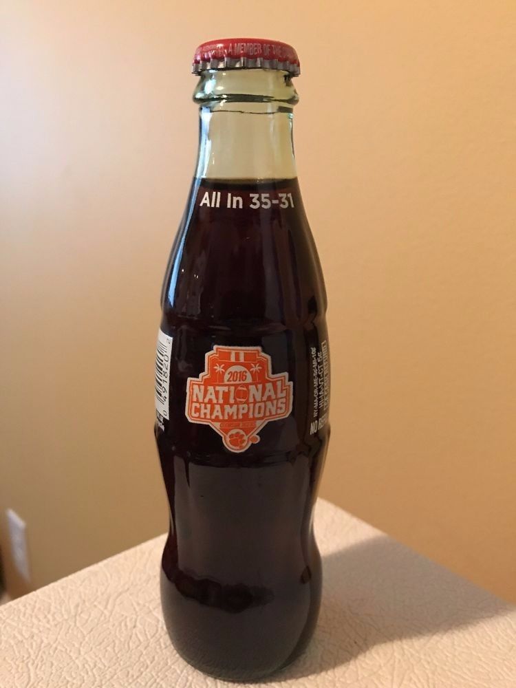 Title (ebay affiliate link): Coca Cola Clemson Tigers 2016 National Championship Coke Bottle 8 oz 1 bottle