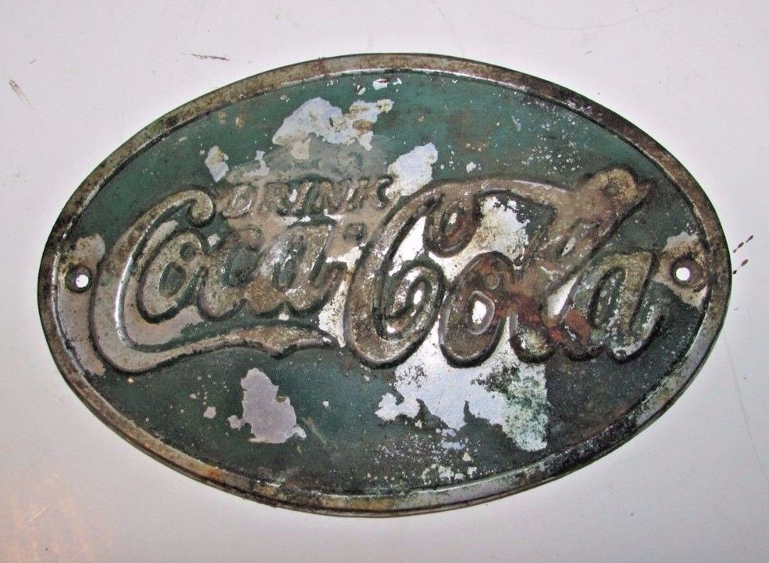 Title (ebay affiliate link): Unusual GREEN Coca Cola Metal Badge or Sign rough shape but Original