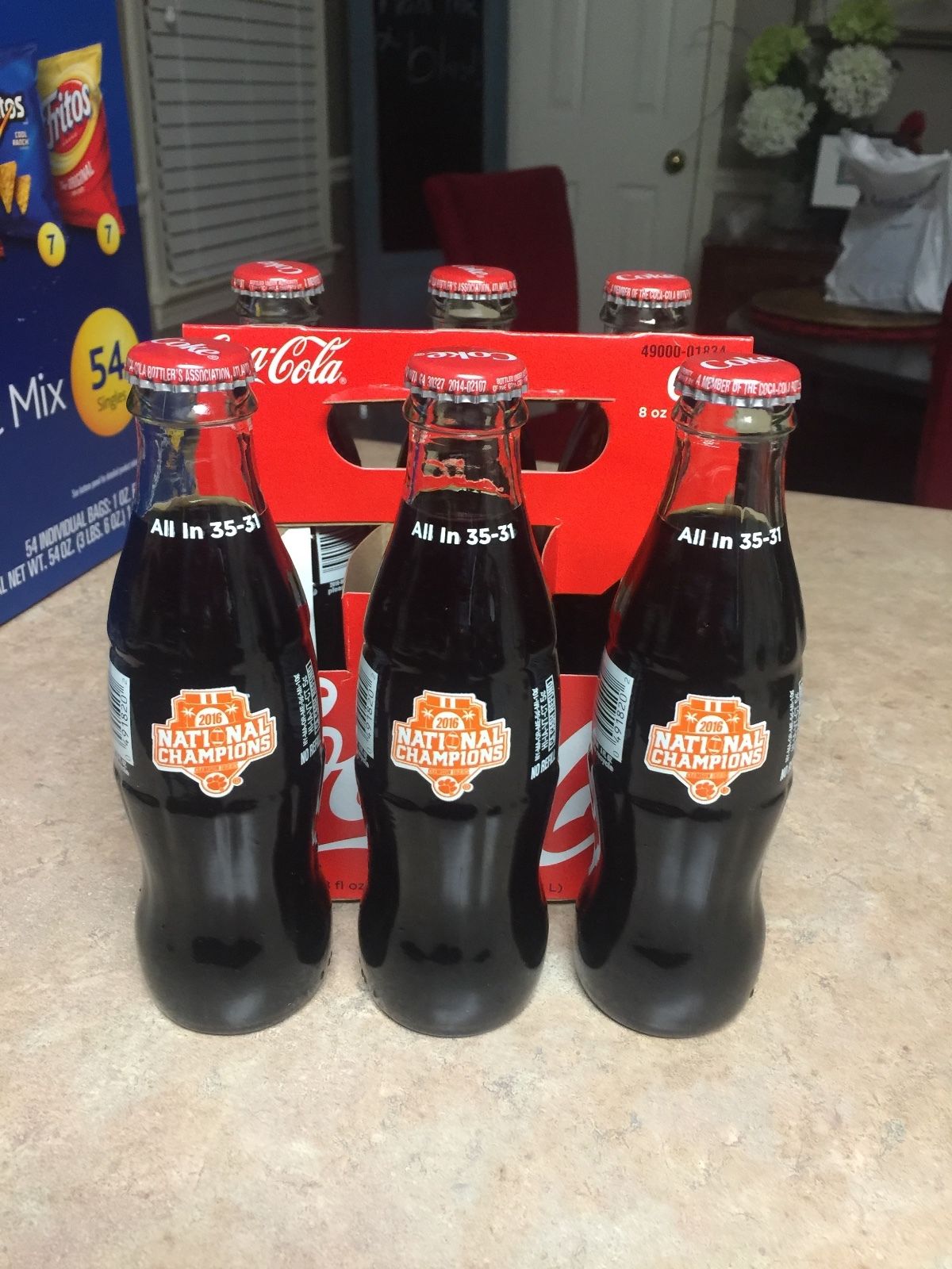 Title (ebay affiliate link): New 6 pack 2016 Clemson National Championship 8 oz. Coke Coca Cola Bottles