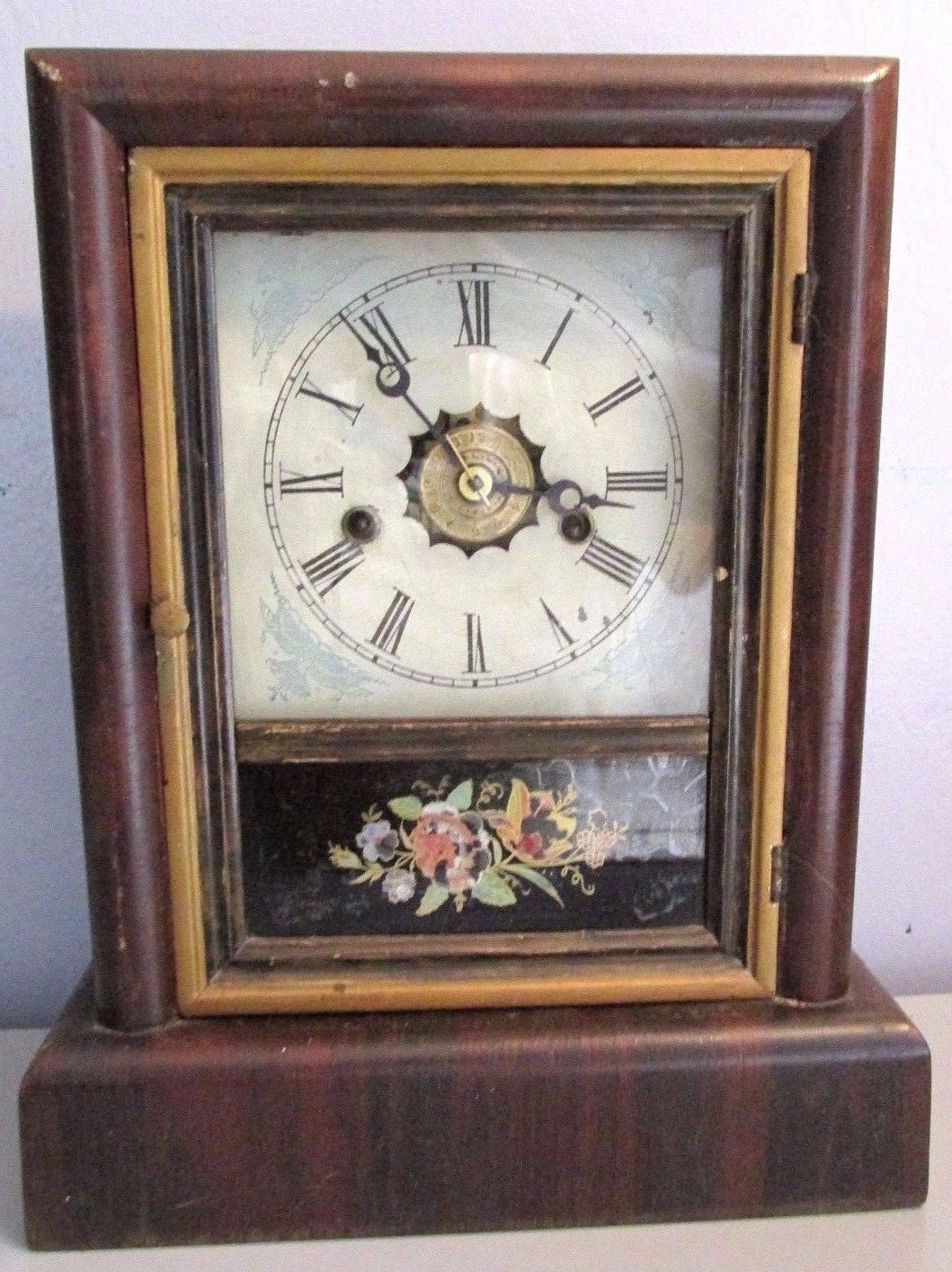 Title (ebay affiliate link): Antique Mantle Clock Reverse Painting With Alarm New Haven Clock Co. Working