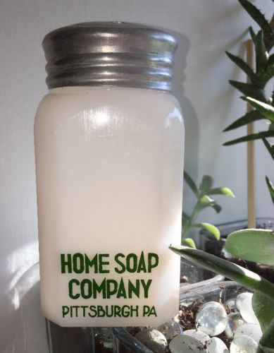 Title (ebay affiliate link): Vintage Milk Glass Advertising Shaker Home Soap Company Pittsburgh Pa