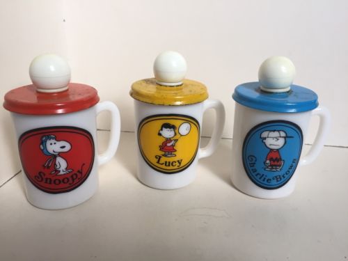 Title (ebay affiliate link): vtg Avon Peanuts Gang Fire King Milk Glass Mug Set lot SNOOPY Charlie Brown LUCY