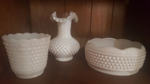 3 Piece MilkGlass Lot 2 Vases & One Candy Dish FREE GIFT