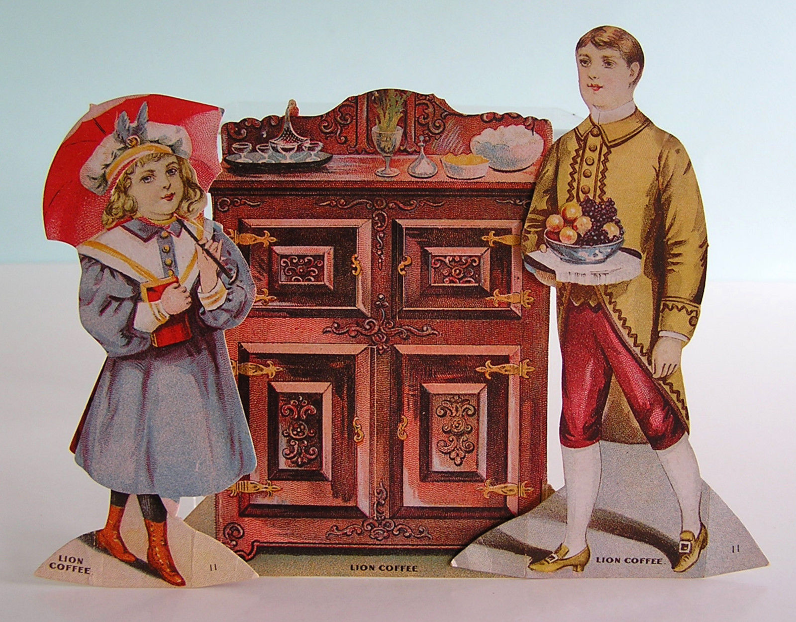 THE BUTLER''S PANTRY ~ 4 Piece Lion Coffee Trade Card Color Litho Paper Dolls