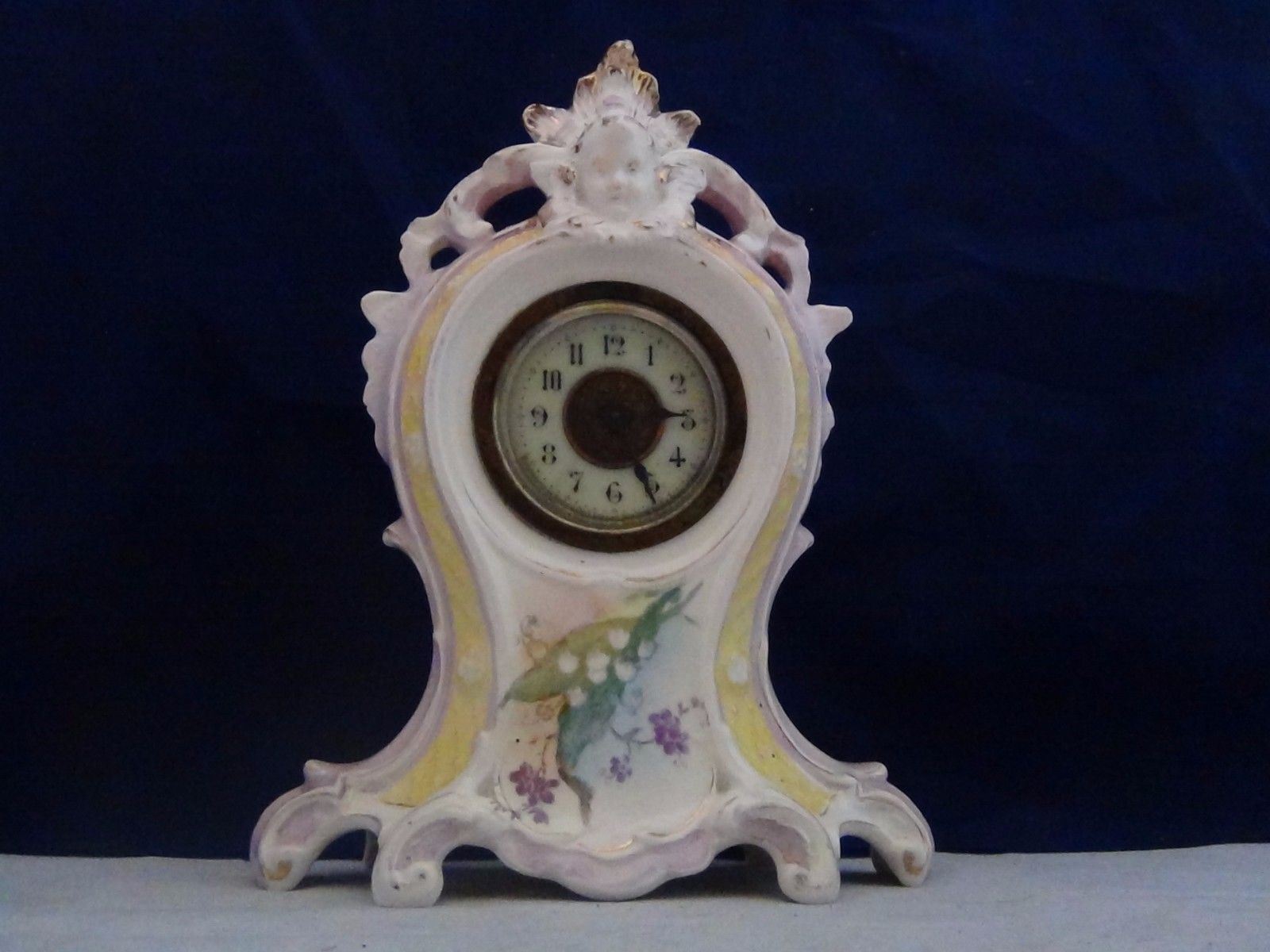 Title (ebay affiliate link): Antique ANSONIA ROYAL BONN 1755 PORCELAIN MANTLE CLOCK New York USA Cherub