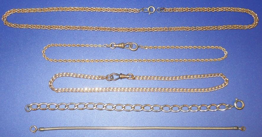 Title (ebay affiliate link): FIVE VINTAGE ANTIQUE GOLD WATCH CHAINS BRACELETS 1/10 12k GF